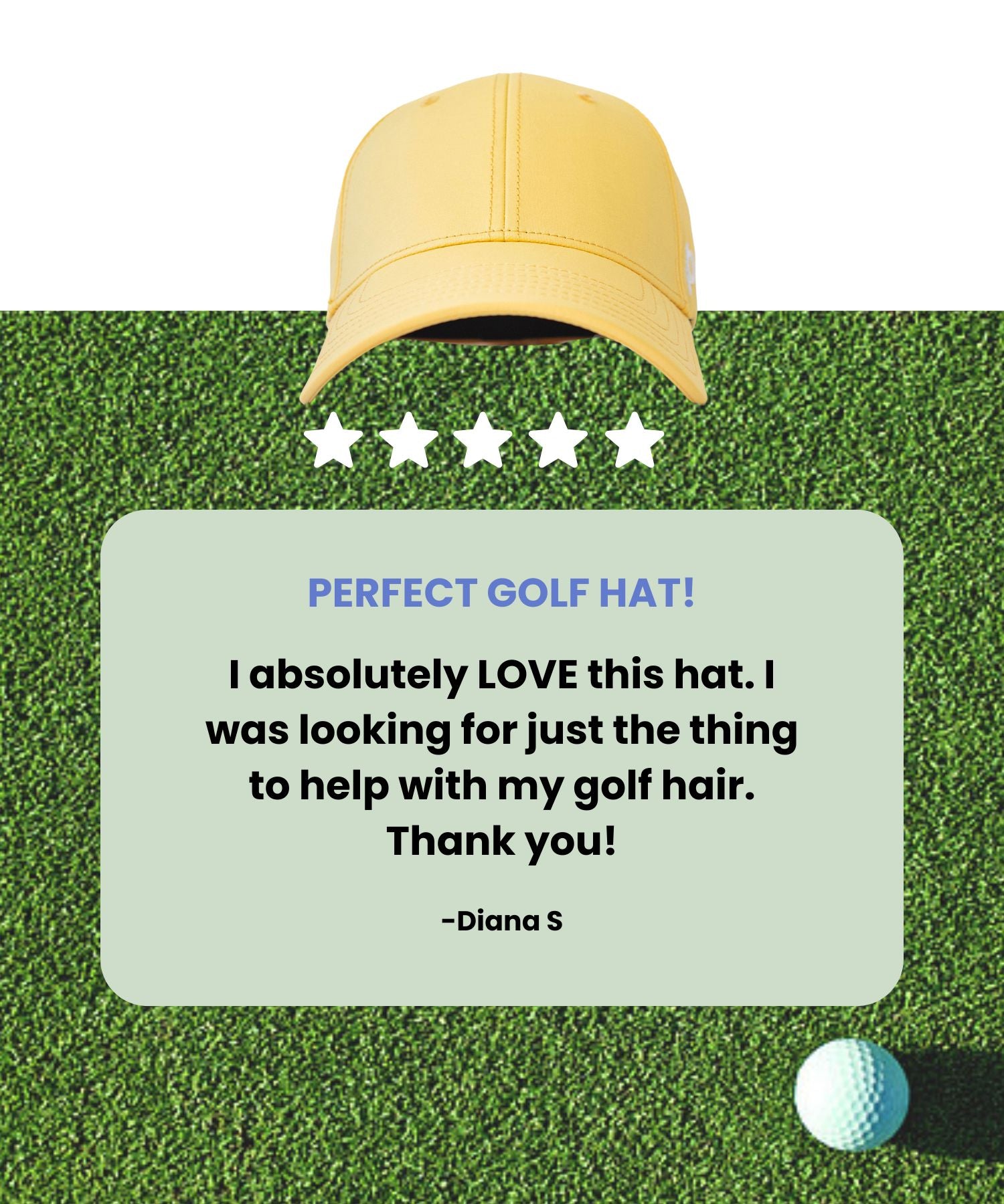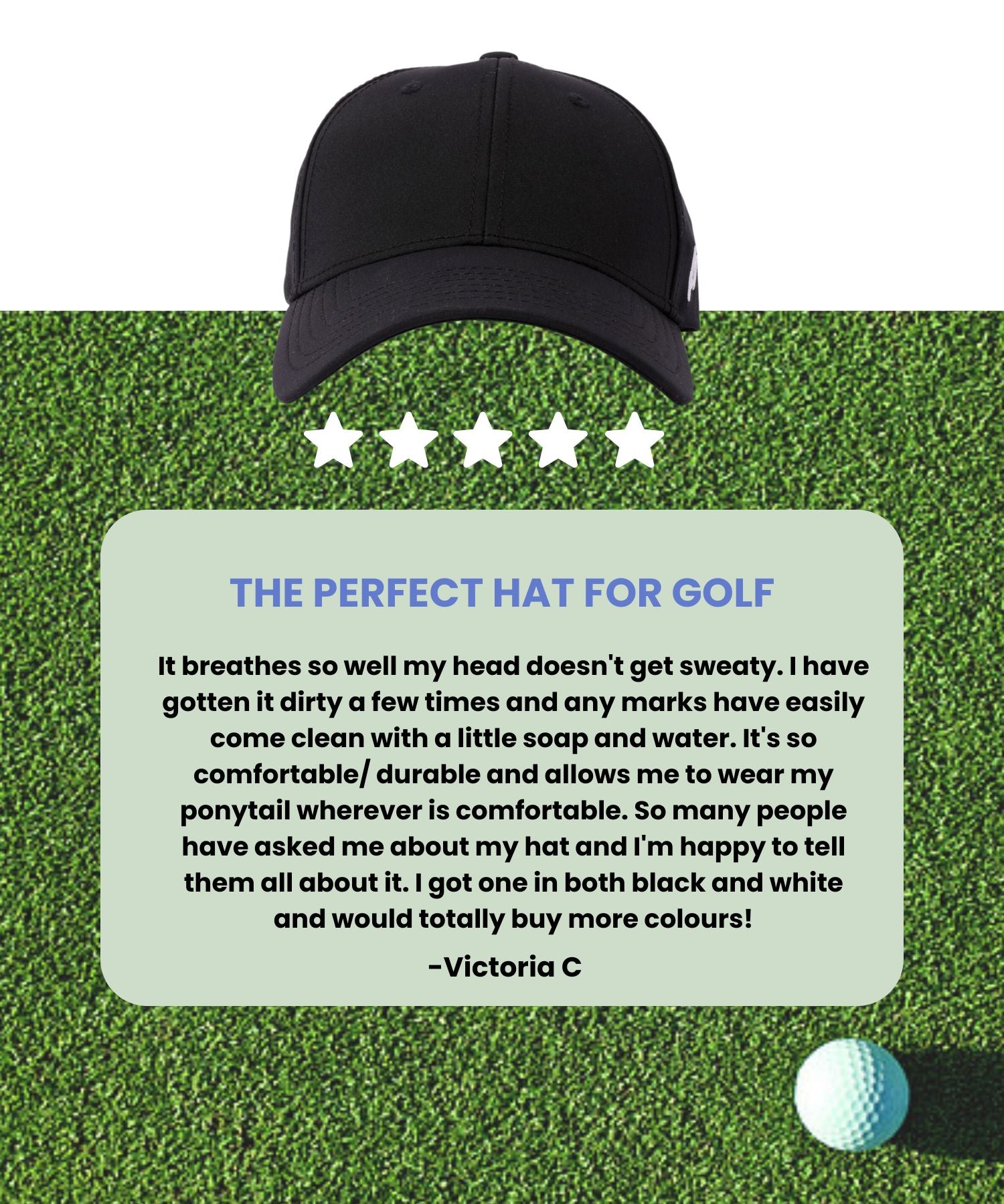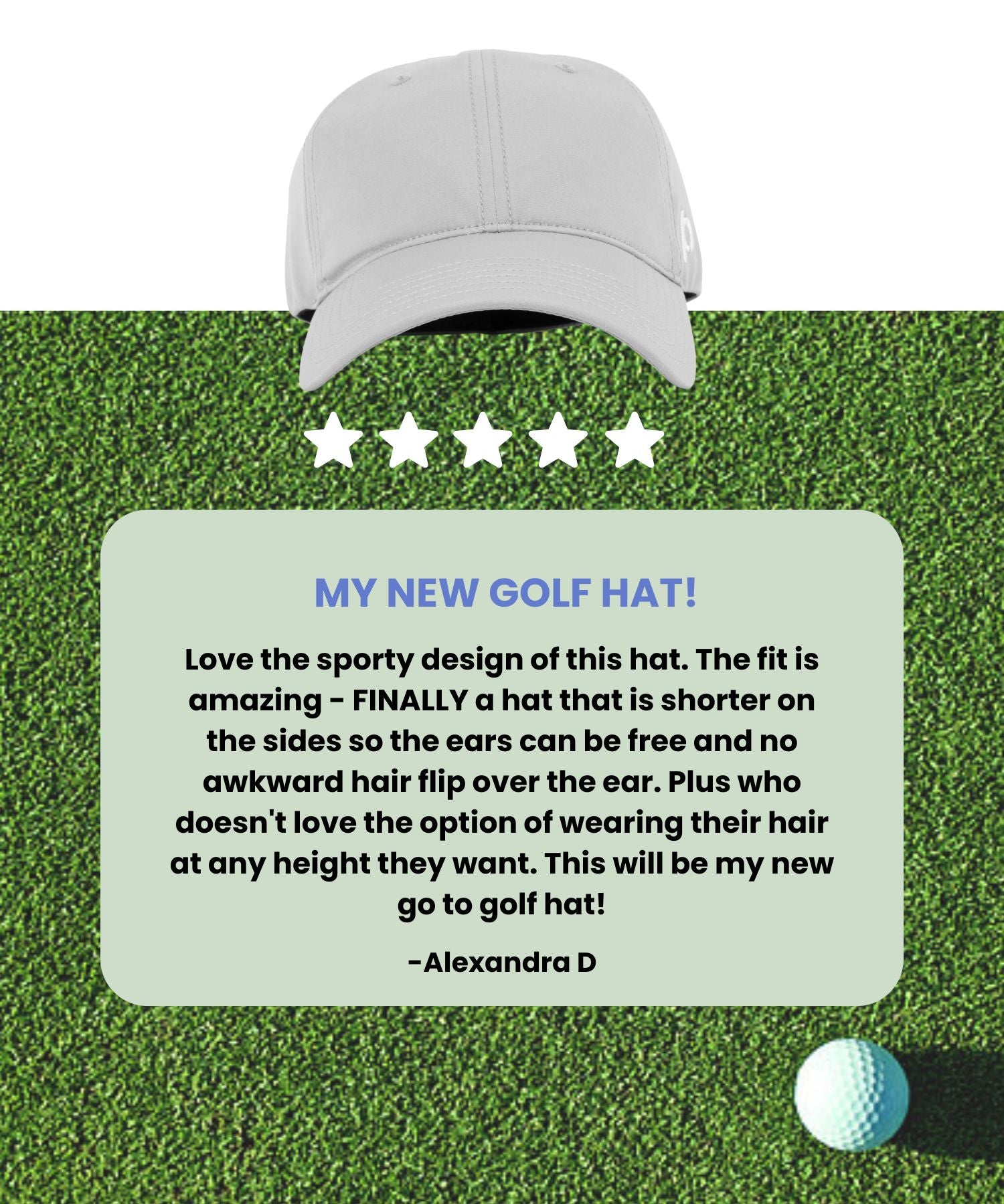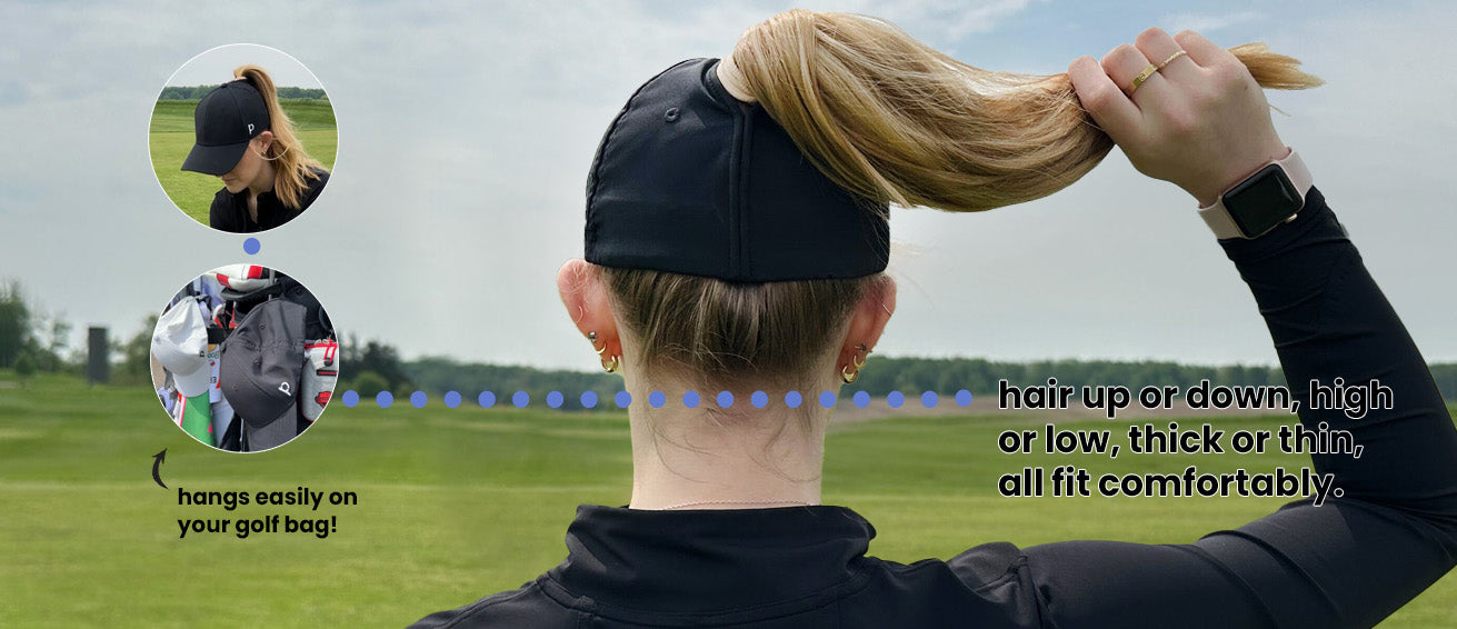 "The Ponyback hat keeps my hair perfectly in place while I focus on my swing."