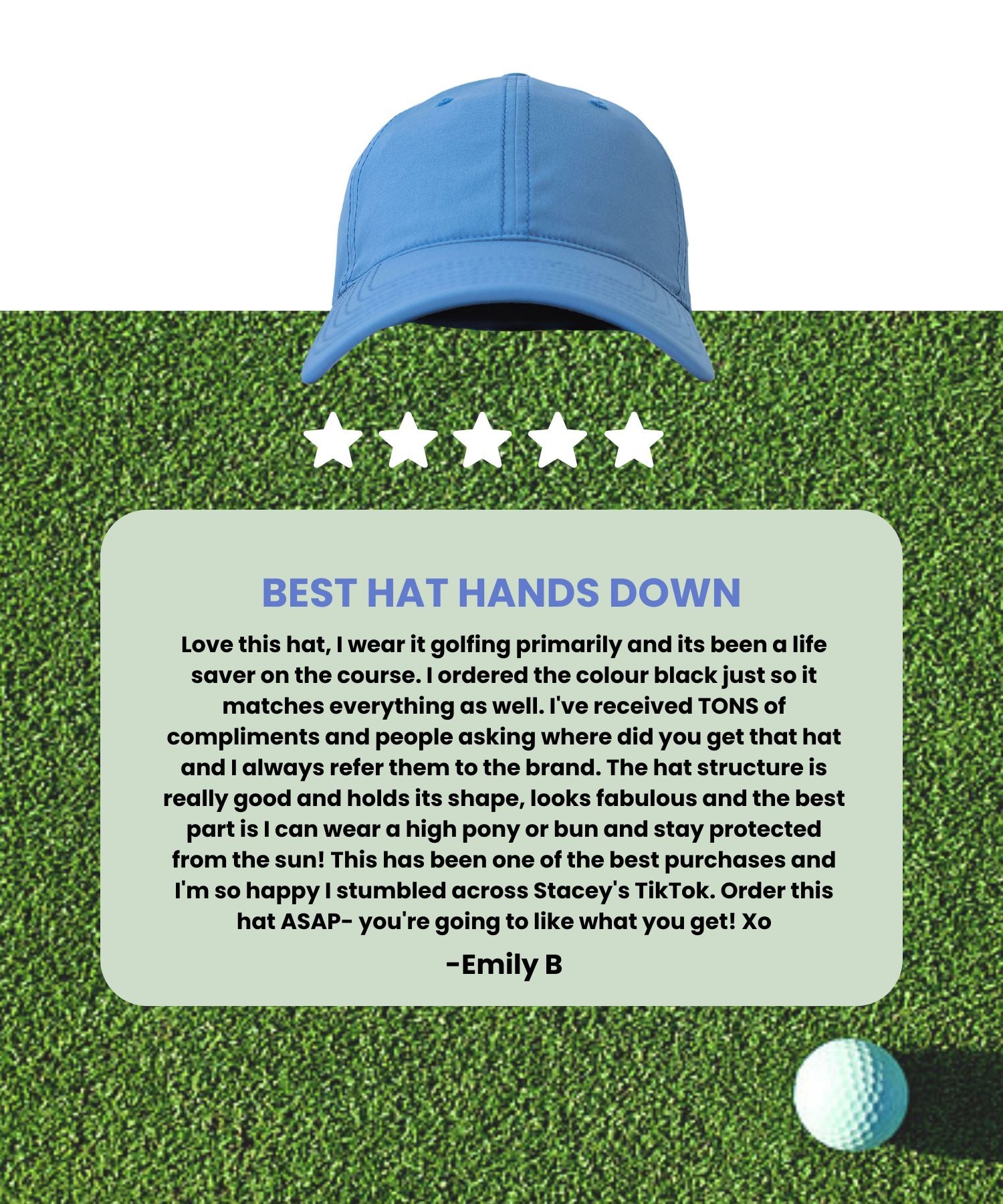 "Must have for any golfer with long hair. It's comfortable, stylish, and I wear it every time I hit the links." - Michelle, a passionate golfer.