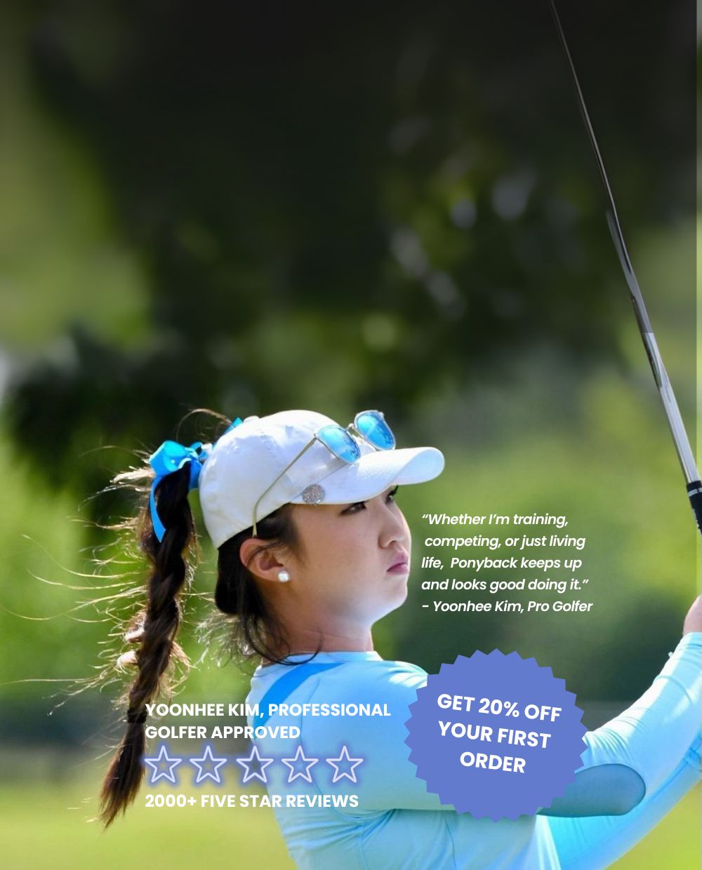 "The Ponyback hat keeps my hair perfectly in place while I focus on my swing."